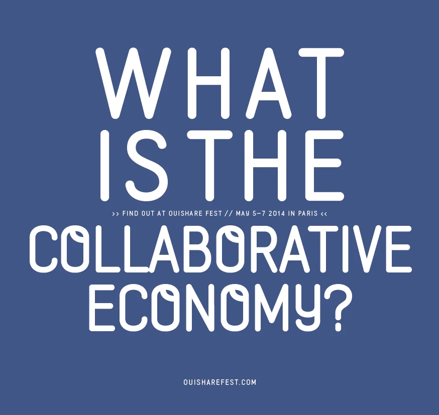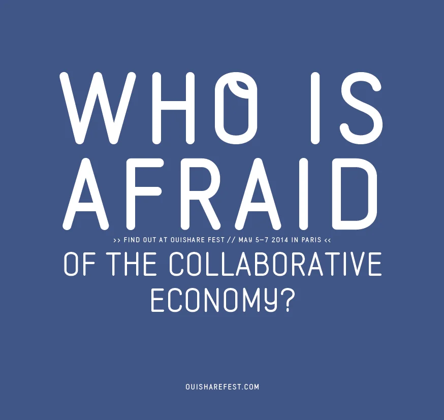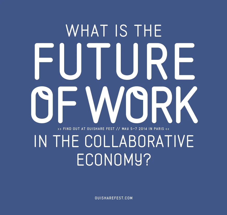 In search of an answer to the question, the illegibly sized font in the center provokes the reader to click on the image. The answer is the OuiShare Fest.