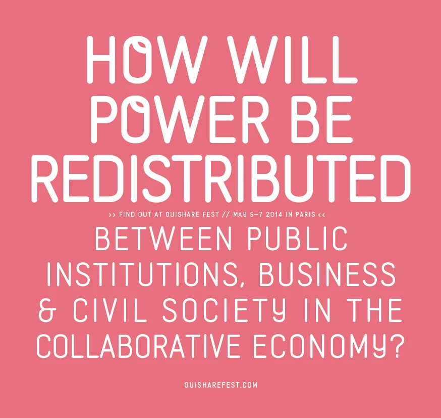 Leading up to the OuiShare Fest 2014 the "Questagrams" were shared one each week on OuiShare's social media channels. A first draft of these important and partially provocative questions was provided through our discussions in early February when we met as a team in Paris, to shape the frame work of the fest program. For the exact phrasing of the Questagrams I worked together with team mate Francesca Pick.