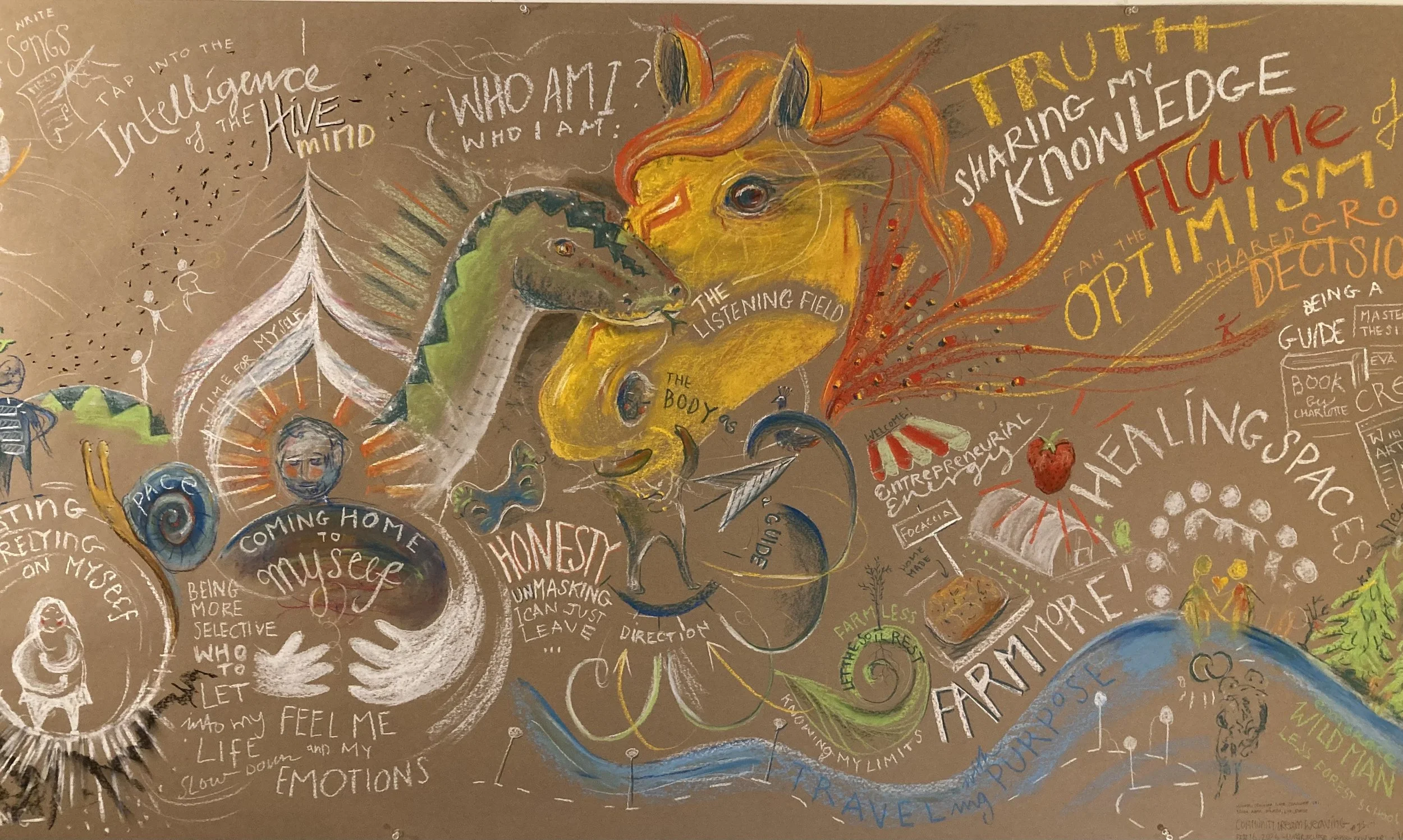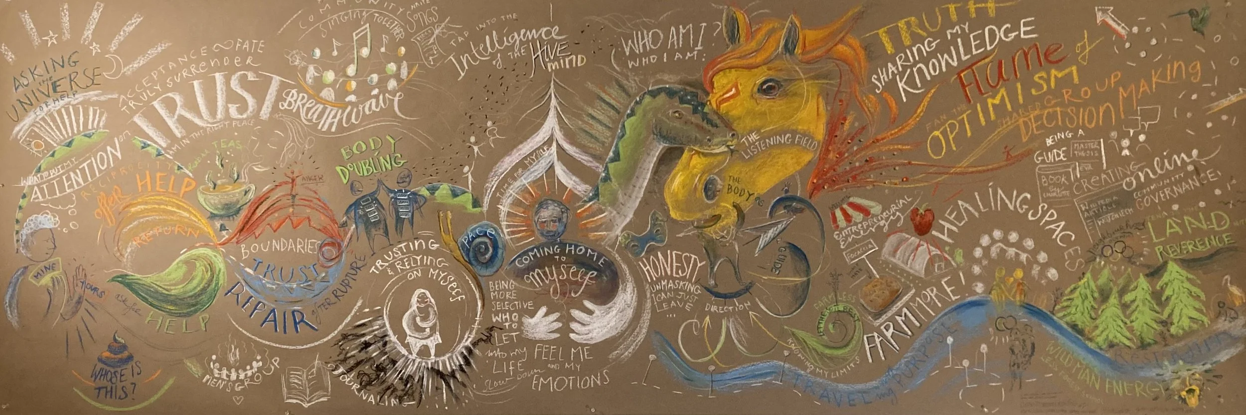 Visual Sensemaking for the RIEP Forum 2023. A three-day Unconference by the Rural Islands Economic Partnership to create connection, offer space for reflection and synthesize this into action. A strong focus on creating economic, social and ecological resilience among and around the needs of rural islands in the Salish Sea.