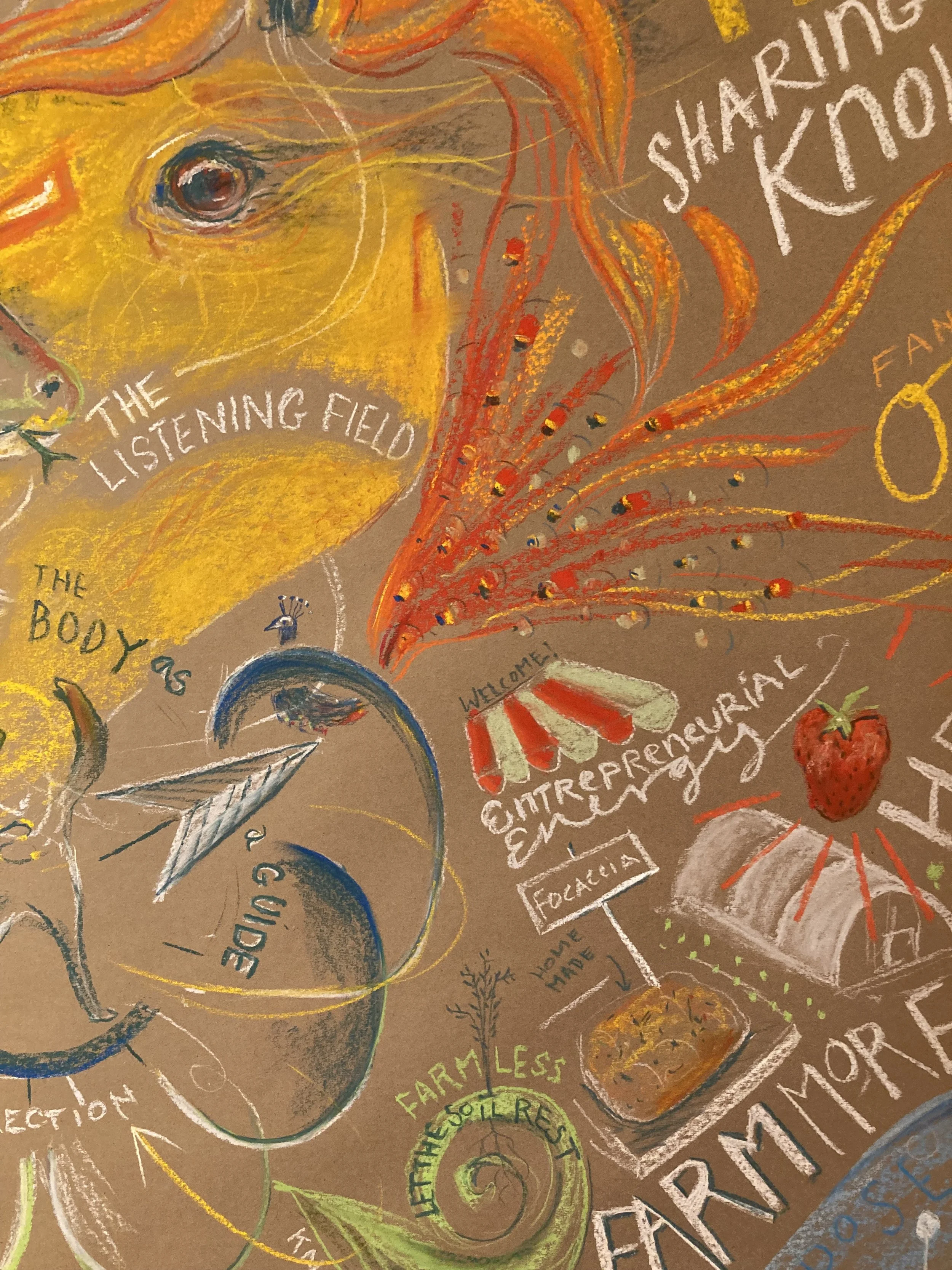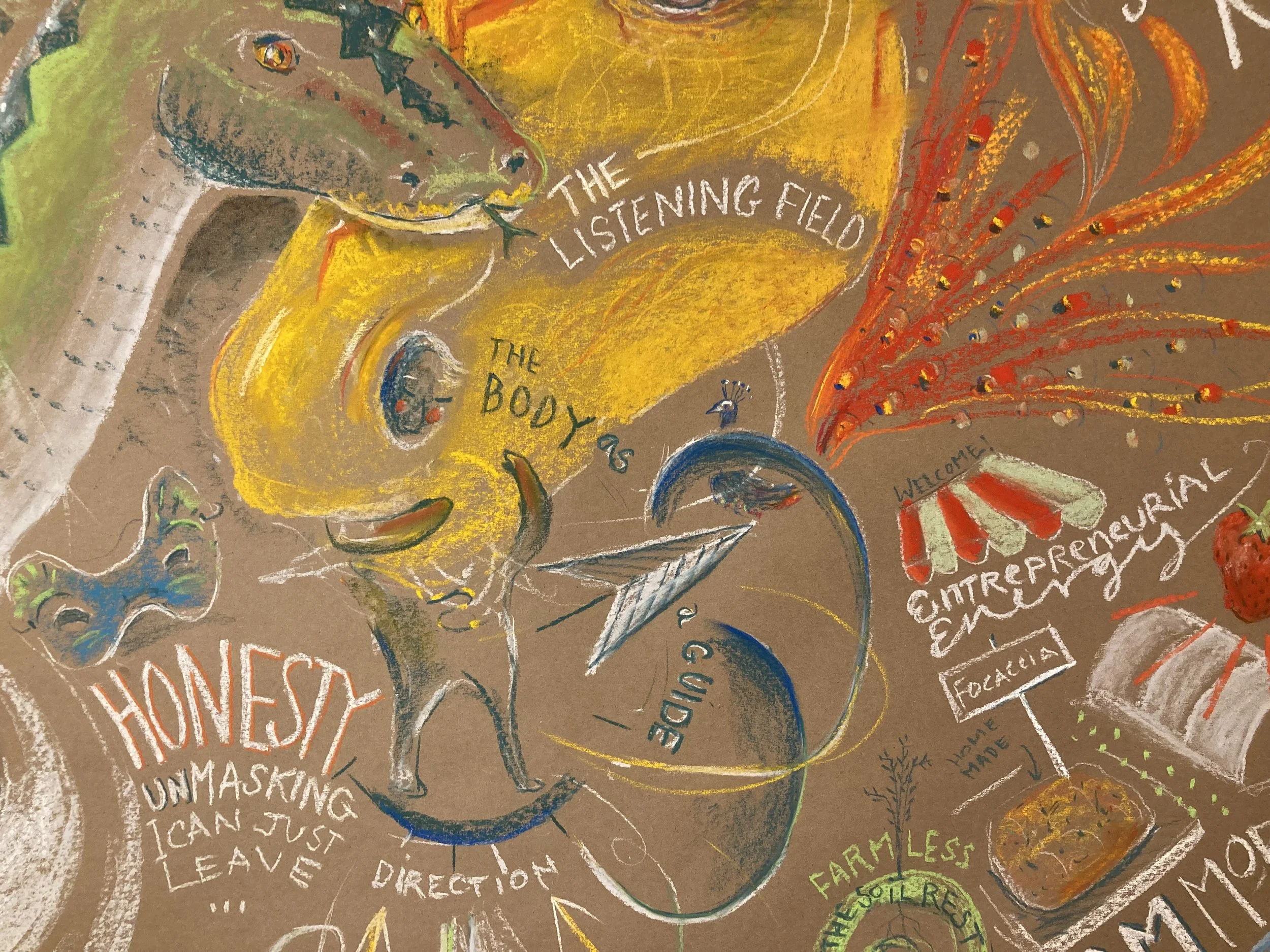 It deepens participation and often even people’s identification with the group as the visual is a tangible representation of the rich conversations held during the gathering. It is an artifact that – in the best case – continues to support communities, organizations and movements long after the gathering has ended.