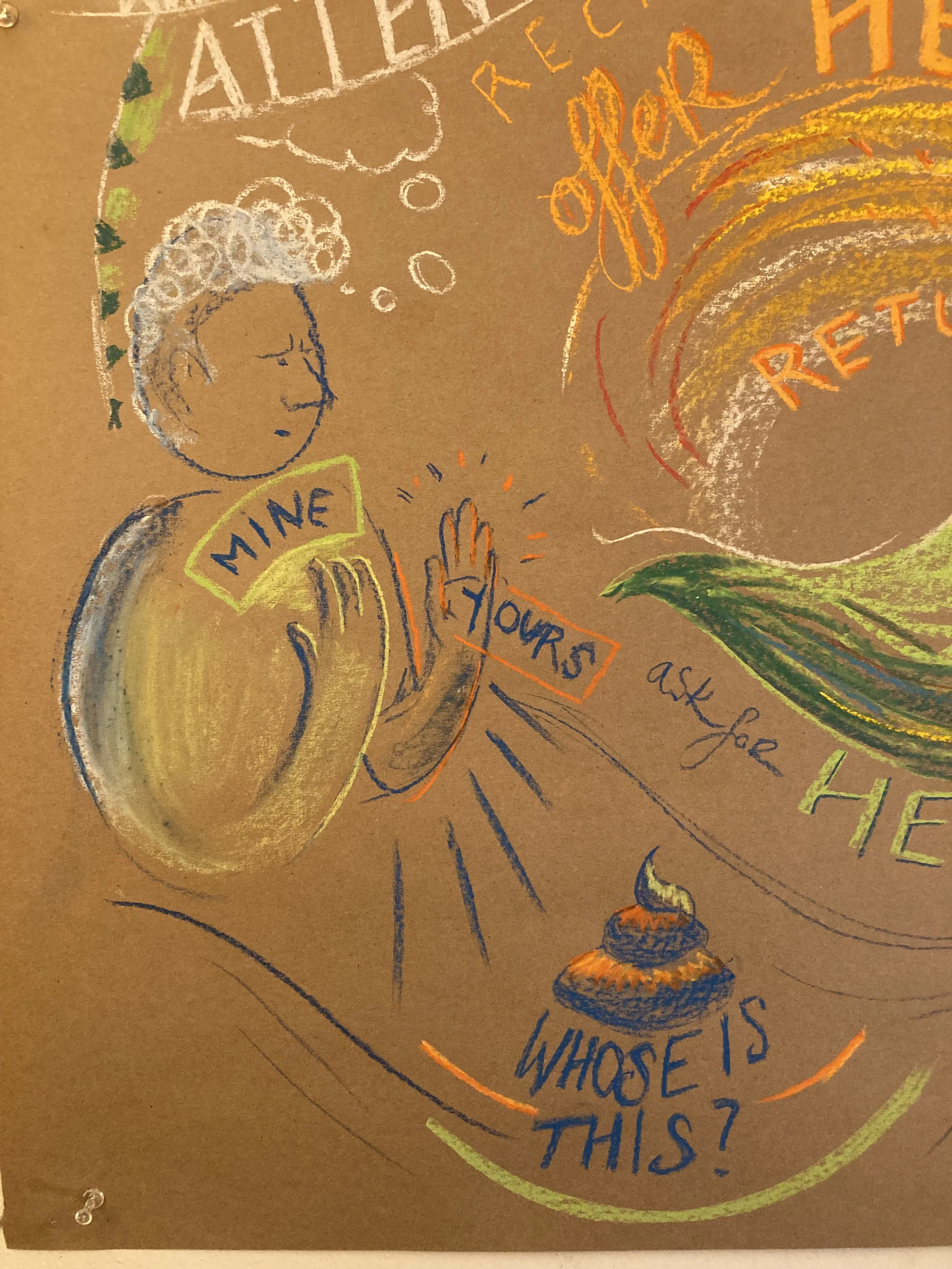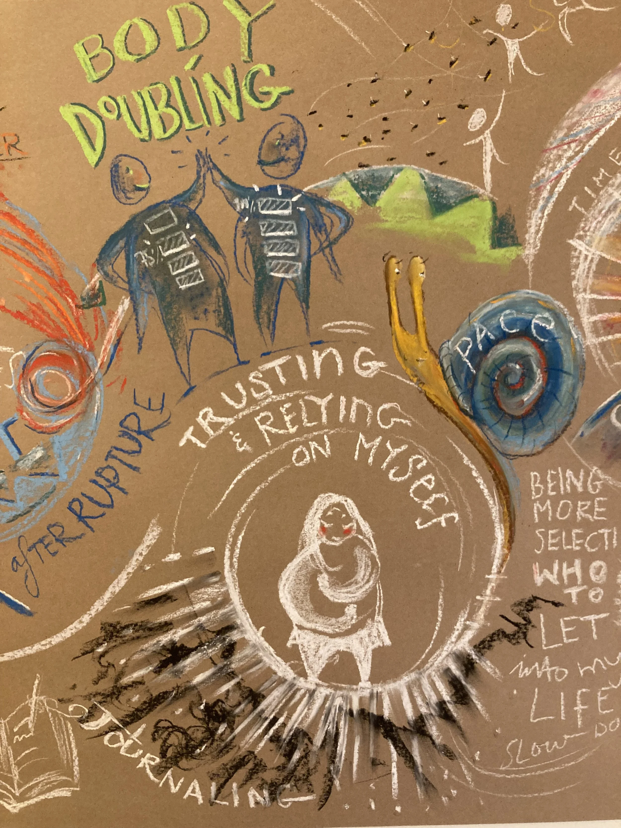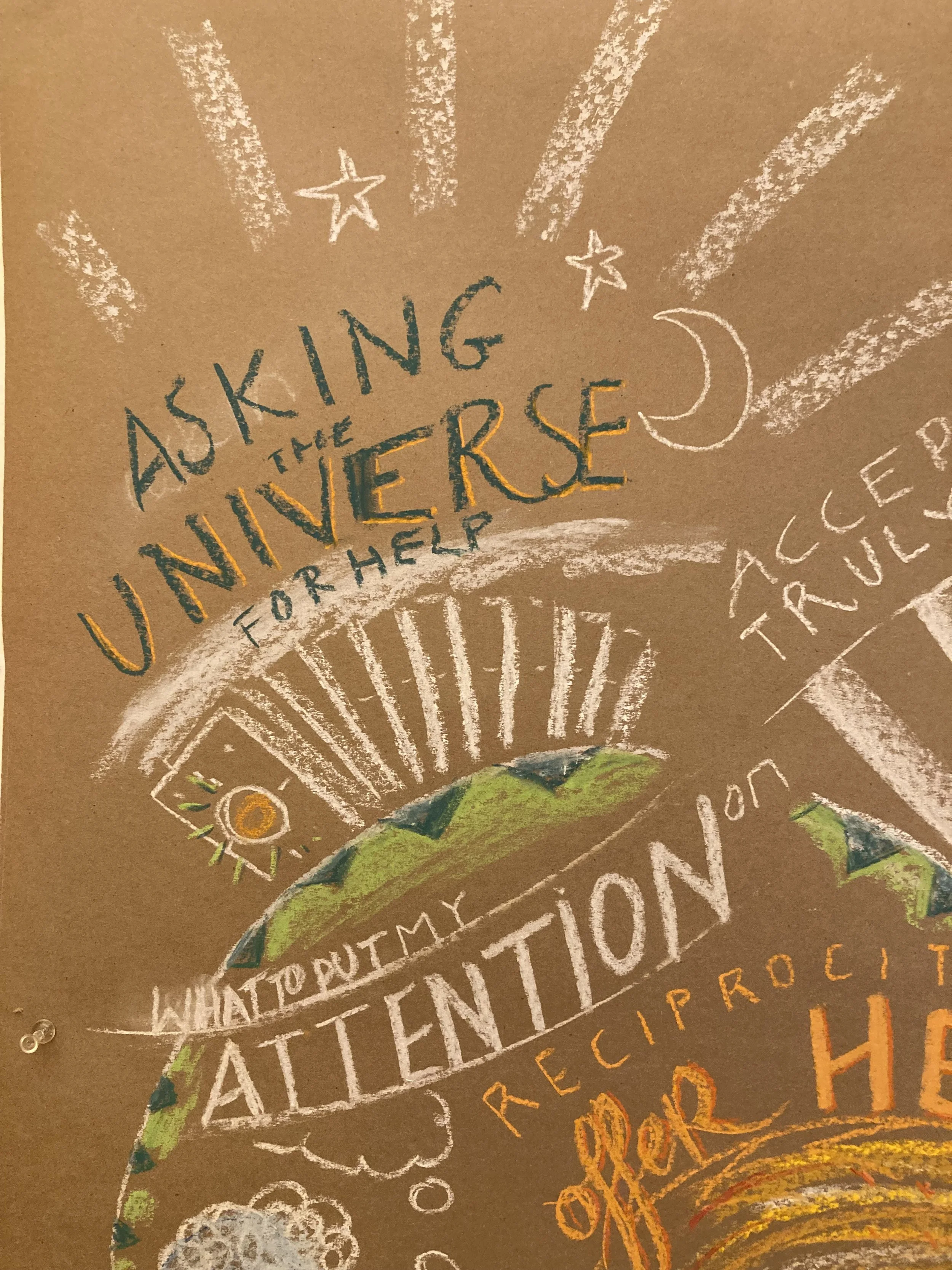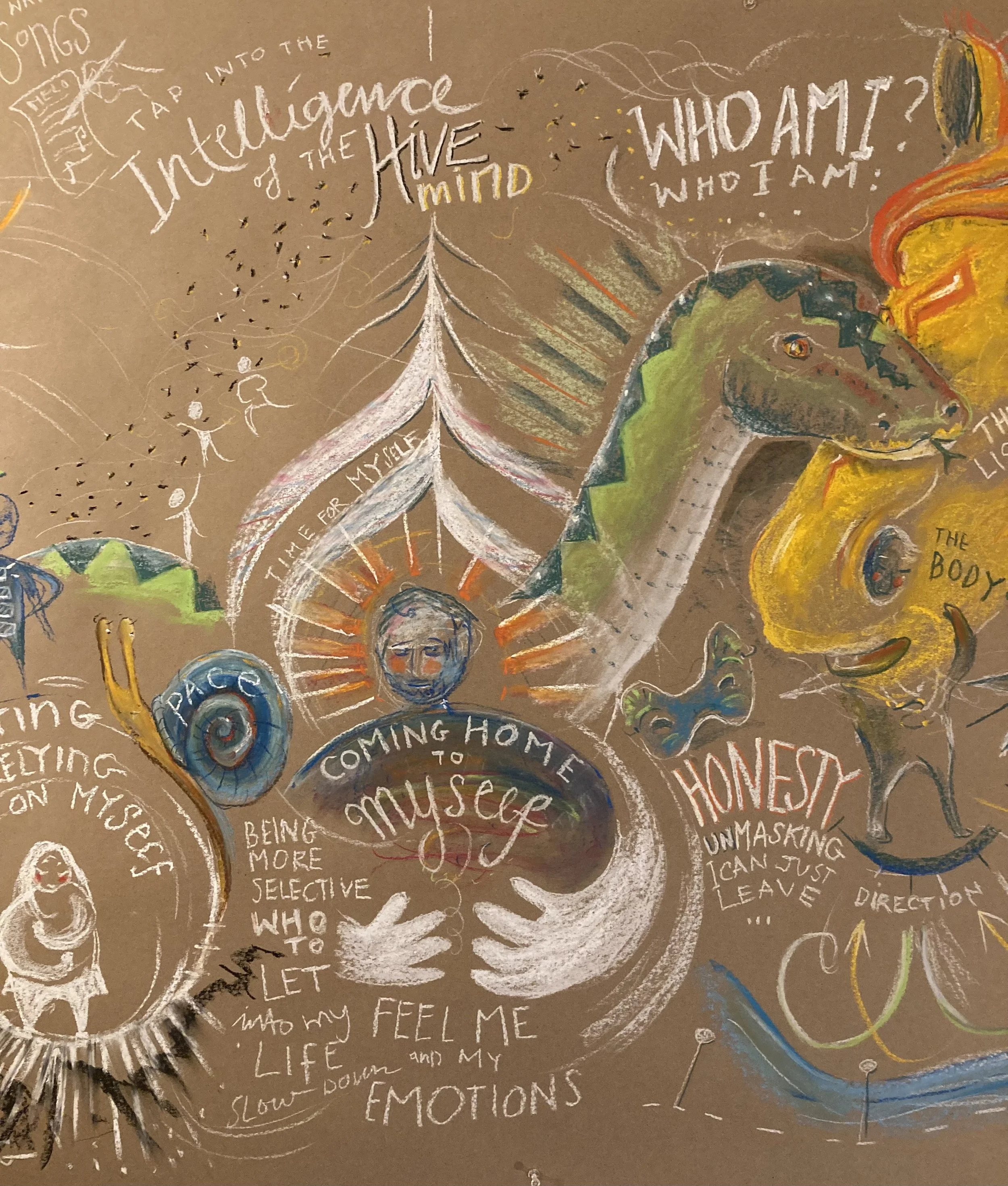 One of the community members stepping in as a scribe. It felt great to be a spectator and part of the sharing circle while someone else is do the visual scribing.