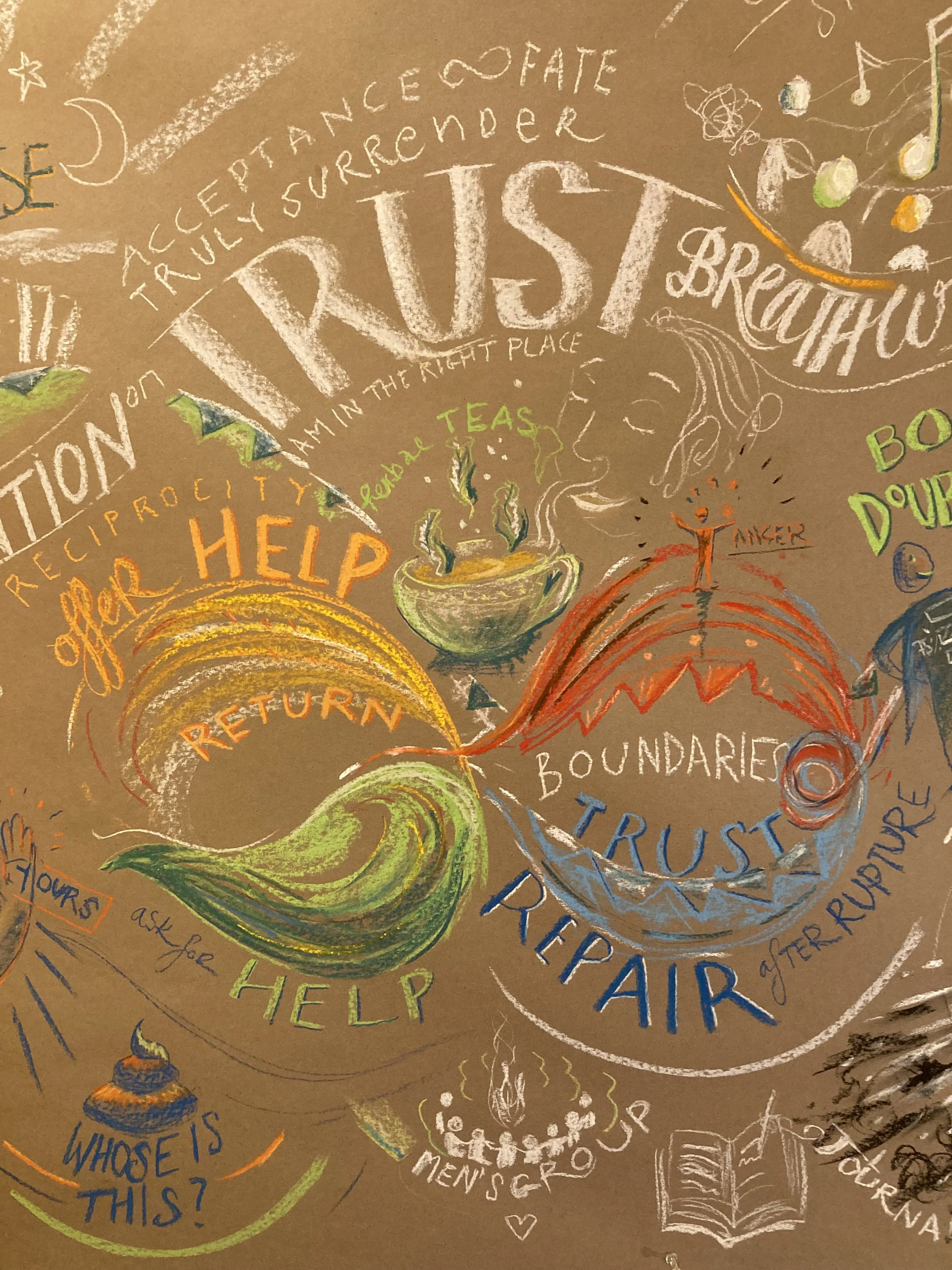 These scribings are complimentary to Joanna Mitchell’s graphic recordings, which were done for each session and contained more details and a more personal angle.